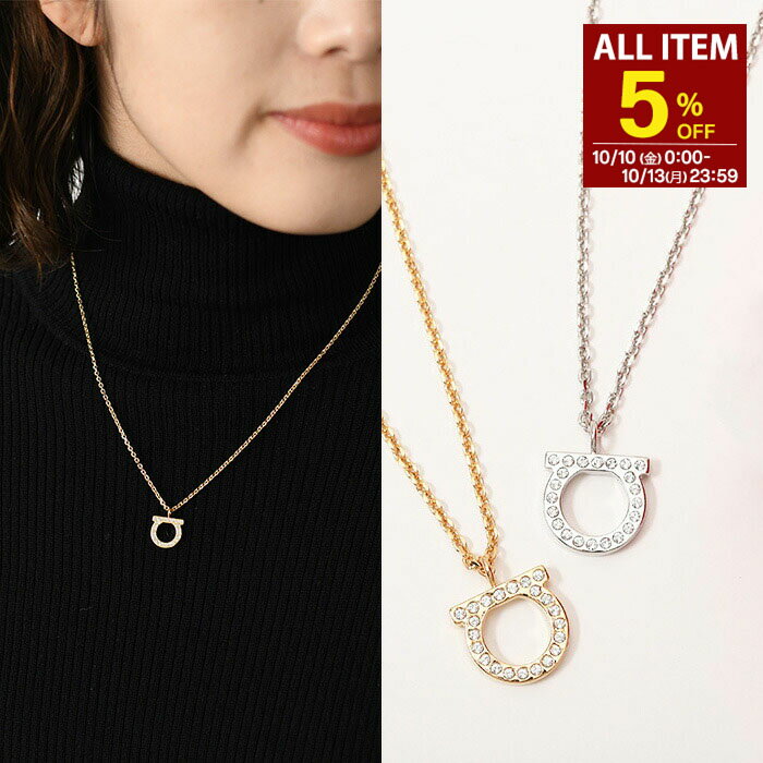 【5%OFFクーポン】FERRAGAMO フェラガモ ネックレス アクセサリー ガンチーニ クリスタルネックレス 760132 696656 696657 レディース ゴールド シルバー クリスタルガラス オケージョン
