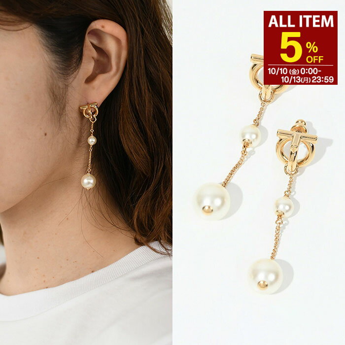 【5%OFFクーポン】FERRAGAMO フェラガモ アクセサリー ピアス ガンチーニピアス 760121 696454 レディース GOLD ゴールド パール オケージョン