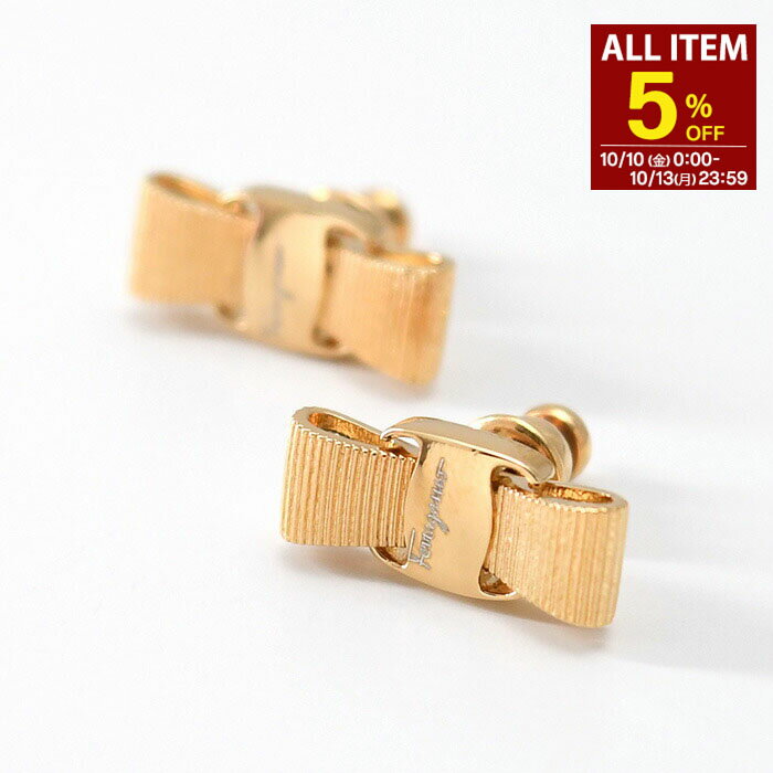 【5%OFFクーポン】FERRAGAMO フェラガモ アクセサリー ピアス ヴァラ・リボン 760546 998984 レディース ゴールド 真鍮 スタッズピアス オケージョン