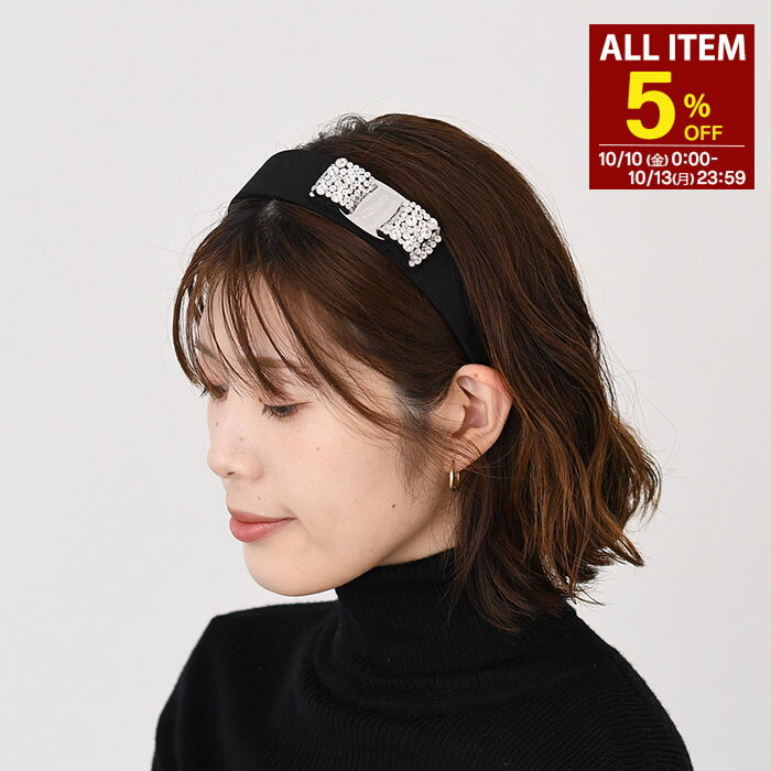 【5%OFFクーポン】FERRAGAMO フェラガモ カチューシャ ヘアアクセサリー ヴァラ リボン 342758 524893 レディース ブラック クリスタル エレガント オケージョン カチューム