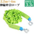 伸縮けん引ロープ 全長4m 収縮時2.2m 牽引ロープ バウ型シャックルフック 車 耐荷重2t 破断張力約3.3t 車用脱出ロープ 頑丈 事故 故障 雪道 普通車 軽自動車