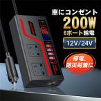 カーインバーター 車載インバーター インバーター 200W 車載充電器 ACコンセント2口 USB 4ポート 充電 12V車用 地震 震災