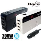 充電器 車 コンセント カーインバーター 200W シガーソケット DC12V AC100V QC3.0×2 2.4A×2 最大9.6A 車載 コンセント 電源 車載充電器 USB4ポート 充電器 カーチャージャー どこエル DOCOL docol
