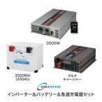 インバーター&バッテリー&急速充電器セット「パワーインバーター3000W」「リチウムイオンバッテリー3750Wh(300Ah)」「マルチチャージャー」(レビュー投稿お願い価格)