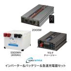 インバーター&バッテリー&急速充電器セット「パワーインバーター2000W」「リチウムイオンバッテリー3750Wh(300Ah)」「マルチチャージャー」(レビュー投稿お願い価格)