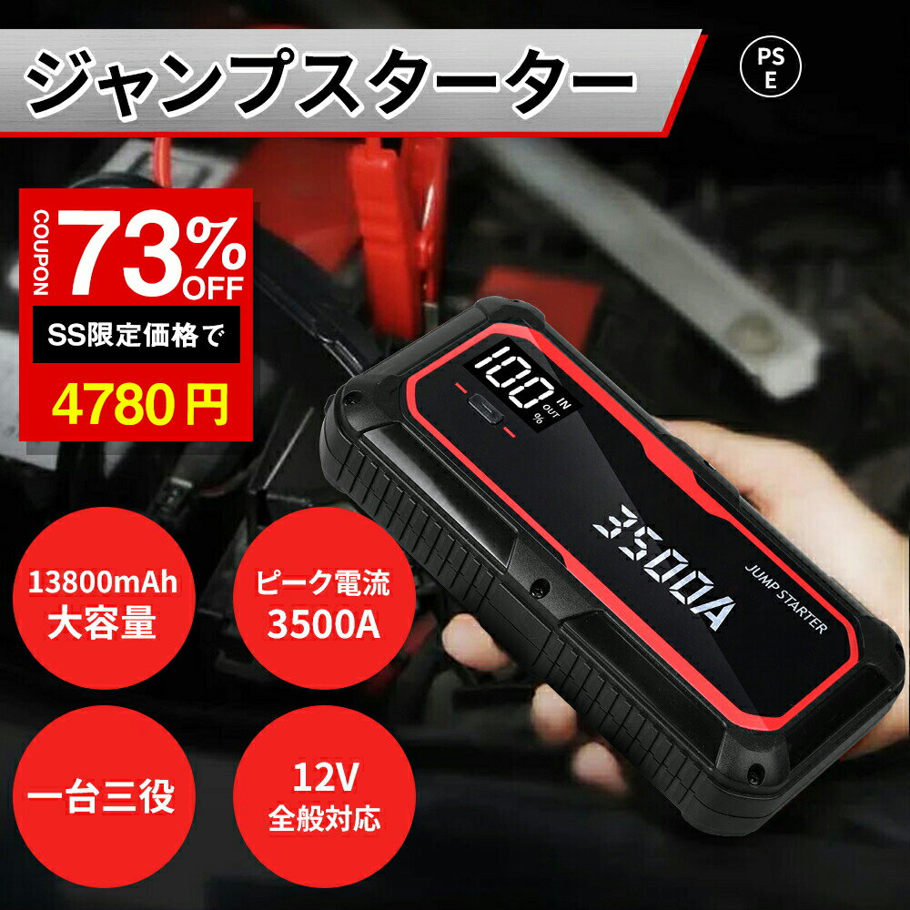 ジャンプスターター 12V車用エンジンスターター ブースターケーブル 12000mAh 車のバッテリー上がり対策 LED緊急ライト搭載 PSE 6ヶ月保証