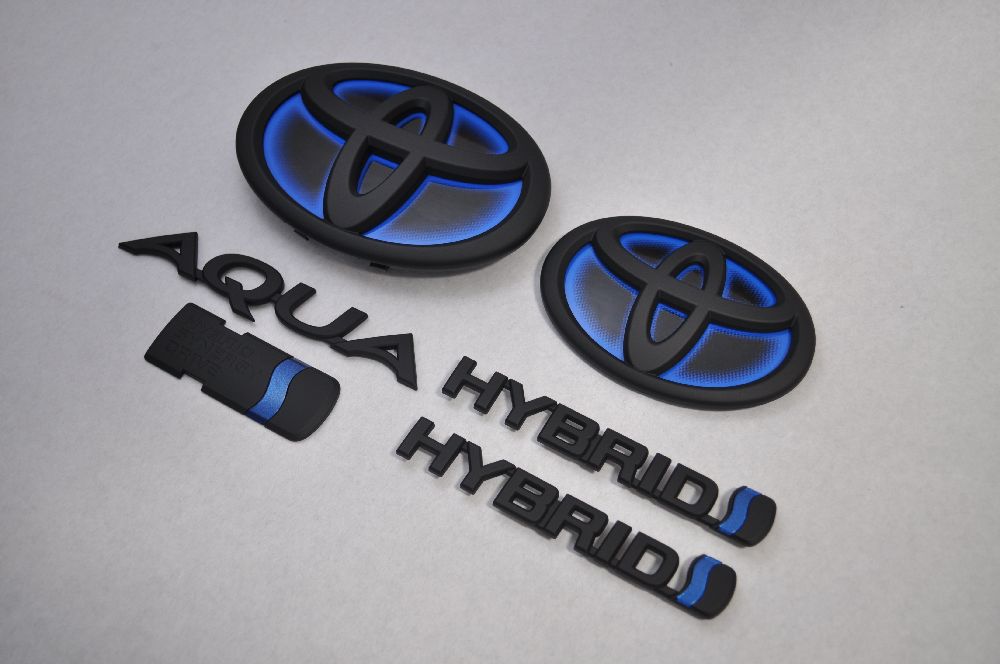 NHP10アクア マットブラックorピアノブラックエンブレム 6点SET INVENTER/grow/メッキ/ブラッククローム/ゴールド/車エンブレム/車パーツ/