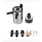 オイルキャッチタンク 2ポートスラブ 円柱型 アルミニウム合金 フィルター付き タンク油分離器 ブラック