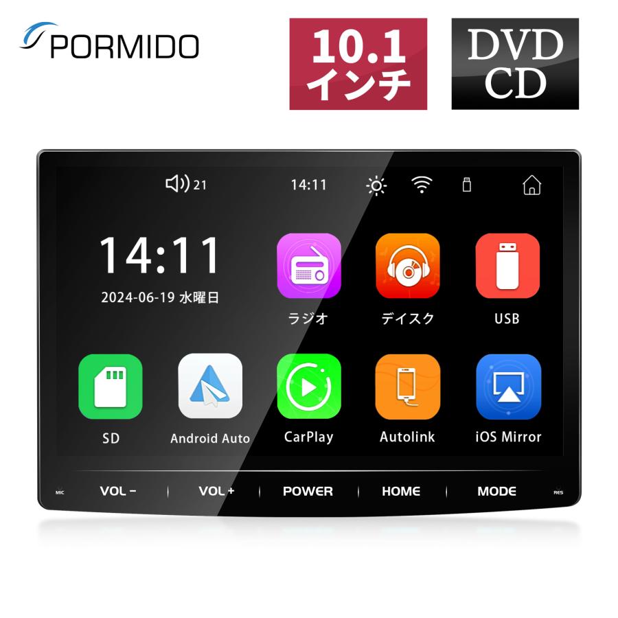 【PORMIDO ポーミド】ディスプレイオーディオ CD DVD 10.1インチ carplay android auto ミラーリング カーオーディオ2DIN bluetooth リバース連動 USB ワイドFM カーナビ PRA105