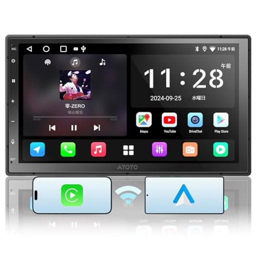 ATOTOZONEA5LAndroidカーナビディスプレイオーディオ2DIN、7インチアンドロイドナビ、GPSトラッキング、Wi-Fi/Bluetooth/USBテザリング、ワイヤレス&有線CarPlay&AndroidAuto、内蔵24