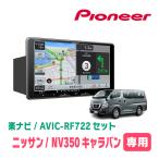 NV350キャラバン(E26系・H24/6〜H29/7)専用 AVIC-RF722 + 取付キット 9インチ・フローティングナビセット パイオニア正規品販売店