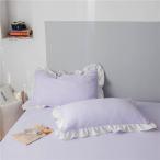 HOLOEE枕カバー 2枚 フリル付き かわいい 48x74 洗い替え 速乾タイプ おしゃれ 選べる オールシーズン 16色 (薄パープル・白い)
