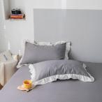 HOLOEE枕カバー 2枚 フリル付き かわいい 48x74 洗い替え 速乾タイプ おしゃれ 選べる オールシーズン 16色(ダークグレー・白い)