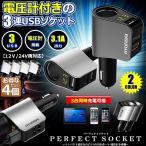 カーチャージャー シガーソケット 4個セット 3ポート 急速充電 usb 3口 3.1A急速充電 12V 24V 電圧計 iPhone Android iPad Galaxy用 カー用品 シガー増設