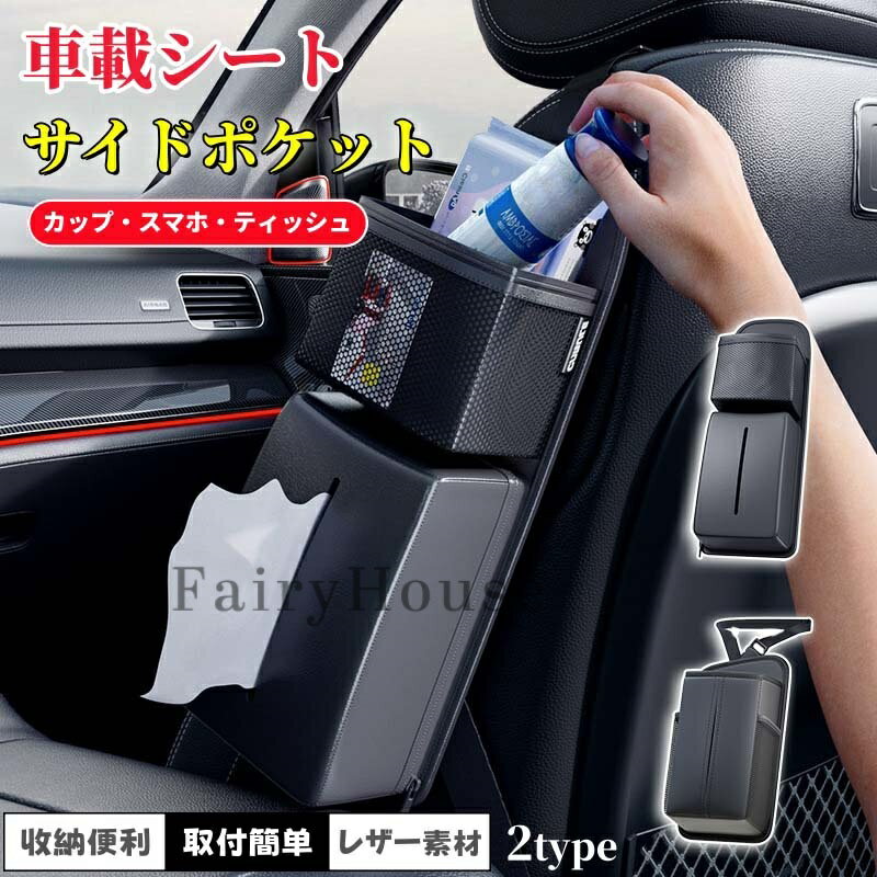 \6%OFFクーポン/車用ティッシュケース 車 シートサイド ティッシュホルダー PUレザー 箱ごと入る 小物収納 サングラス収納袋付き カーアクセサリー シートサイドポケット 車 収納ポケット シートバックポケット 車 サイド収納ボックス 皮革素材