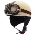 ZK-200 装飾ゴーグル付きビンテージ(アイボリー/ブラウン)着脱式耳当て SG公認 125cc以下対応 盗難防止金属ホルダー 新基準強化バックル採用
