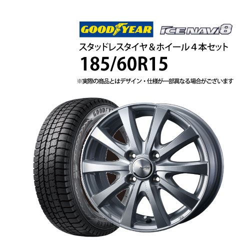 5%OFFクーポン 185/60R15 スタッドレスタイヤ アルミホイール 4本セット グッドイヤー アイスナビ8 1555+42-4H100 ウェッズ ラブリオンRS01 ( 15インチ アウトレット 未使用 185/60-15 )