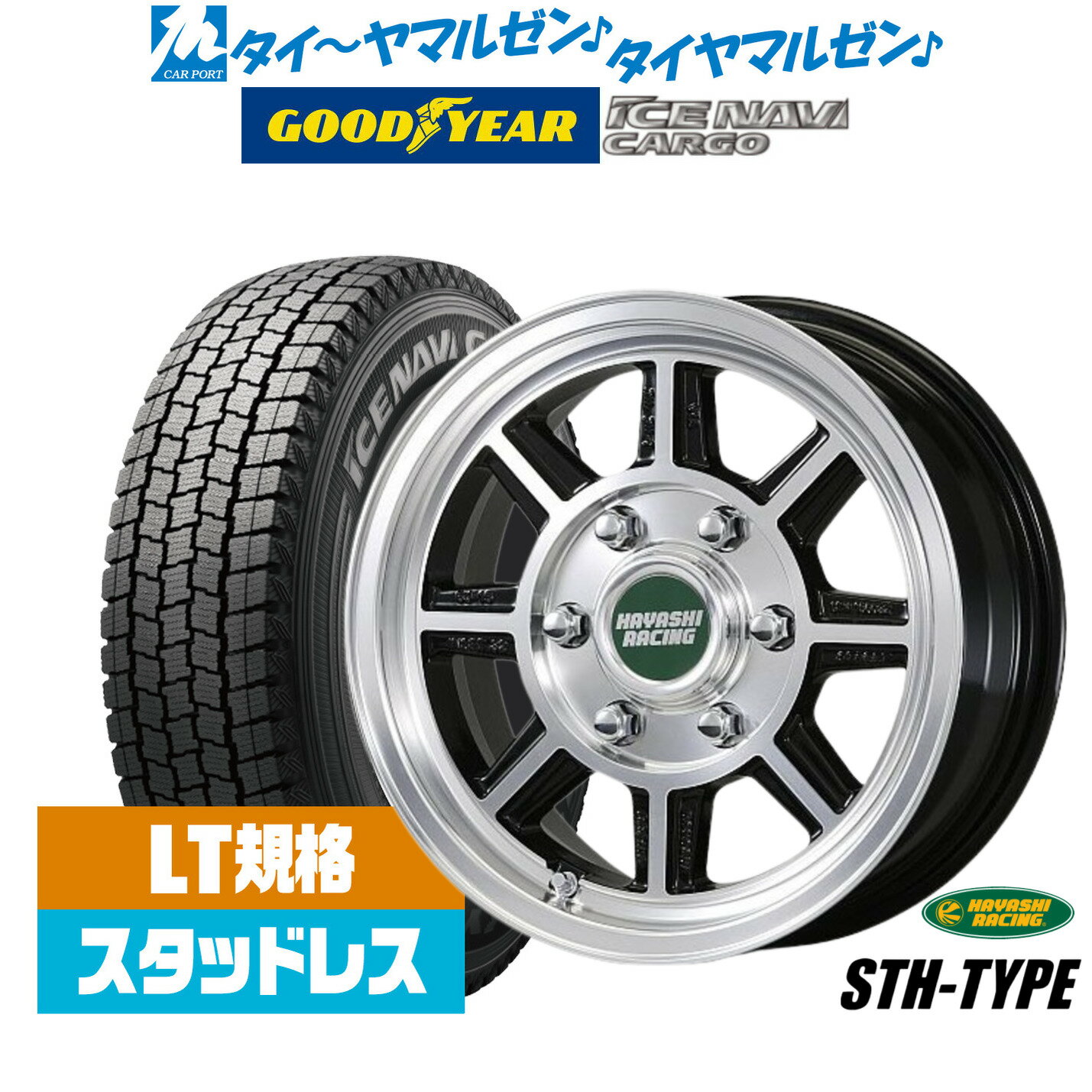【2025年製】新品 スタッドレスタイヤ ホイール4本セットハヤシレーシング ハヤシストリート(STH)15インチ 6.0Jグッドイヤー ICE NAVI アイスナビ カーゴ 195/80R15