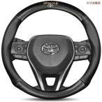 ハンドルカバー トヨタ ノア ハイラックス ハリアー プリウス ステアリングホイールカバー 本革 高級 牛革 専車ロゴ 内装品パーツ 滑りにくい 文字付き