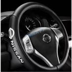 高品質 Nissan 革 ステアリングカバー ハンドルカバー ニッサン ブラック