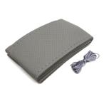 uxcell 車のステアリングホイールカバー プロテクター ラップ フェイクレザー 針 糸付き DIY 36cmの直径 グレー
