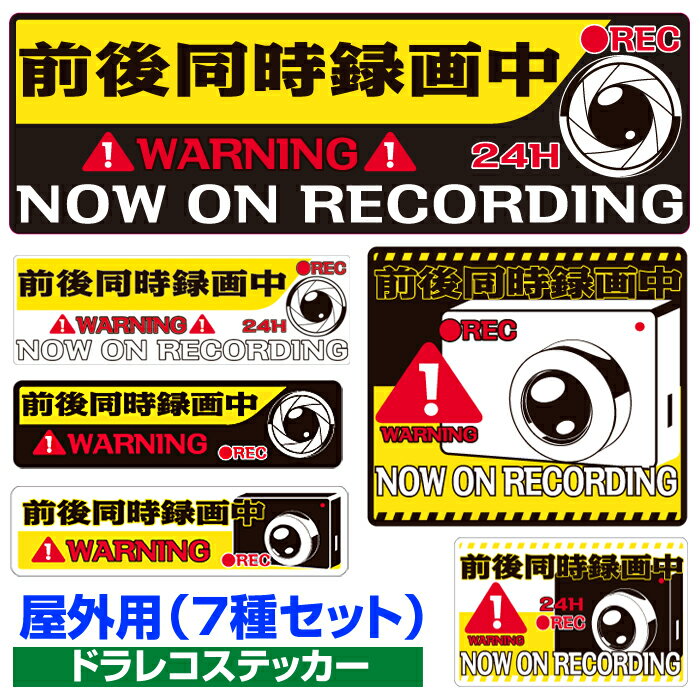 \BLACK FRIDAY先着10%OFFクーポン/ドライブレコーダー ステッカー (黄/黒) 7種セット ドラレコ 録画中 常時録画 搭載車 監視中 あおり防止 トラブル 危険運転 シール