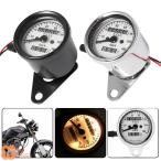 【並行輸入品】 汎用 バイク スピードメーター ブラック/クローム LEDライト オドメーター スピードメーター ゲージ マイル ハーレー ホンダカフェレーサーバ