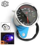 バイク用 機械式 LED ミニ スピードメーター 140km/h 60mm ブルー 汎用 オドメーター トリップメーター インジケーター 走行距離計 ステー付き 交換 修理