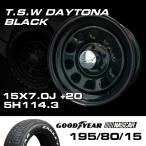 TSW DAYTONA ブラック 15X7J+20 5穴114.3 ナスカー 195/80R15 ホイールタイヤ4本セット