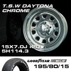 TSW DAYTONA クローム 15X7J+20 5穴114.3 ナスカー 195/80R15 ホイールタイヤ4本セット