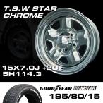 TSW STAR クローム 15X7J+20 5穴114.3 ナスカー195/80R15 ホイールタイヤ4本セット