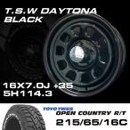 TSW DAYTONA ブラック 16X7J+35 5穴114.3 TOYO OPEN COUNTRY ホワイトレター 215/65R16C ハイエース100系や152系ハイラックスなどに