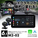 バイク用 ディスプレイオーディオ 防水 6.1インチ スマートモニター 前後2カメラ 同時録画 モトミラー CarPlay/AndroidAuto対応 M2-02