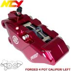 NCY 4POD鍛造CNC削出ブレーキキャリパー赤N-23左側[ブレンボ40mm形状]専用ブレーキパッド付 PCX125/PCX150/ズーマーX/XR250モタード等