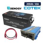 ワンゲイン車中泊リチウムスターター 5点セット 2000W12V RENOGY バッテリー200Ah COTEK インバーター 充電器 SPR2012C1 レノジー