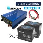 ワンゲイン車中泊リチウムスターター 5点セット充電器内蔵 3000W24V RENOGY バッテリー200Ah COTEK インバーター 充電器 SC3024RBT2 レノジー