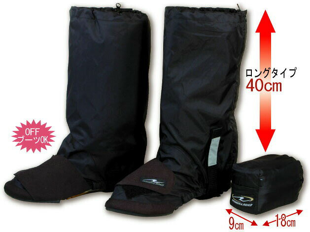[サイズ交換可能]【ラフアンドロード】RR5826 コンパクトブーツカバーロング 収納袋付き バイク レインカバー 靴 防水 ROUGH&ROAD ラフ&ロード