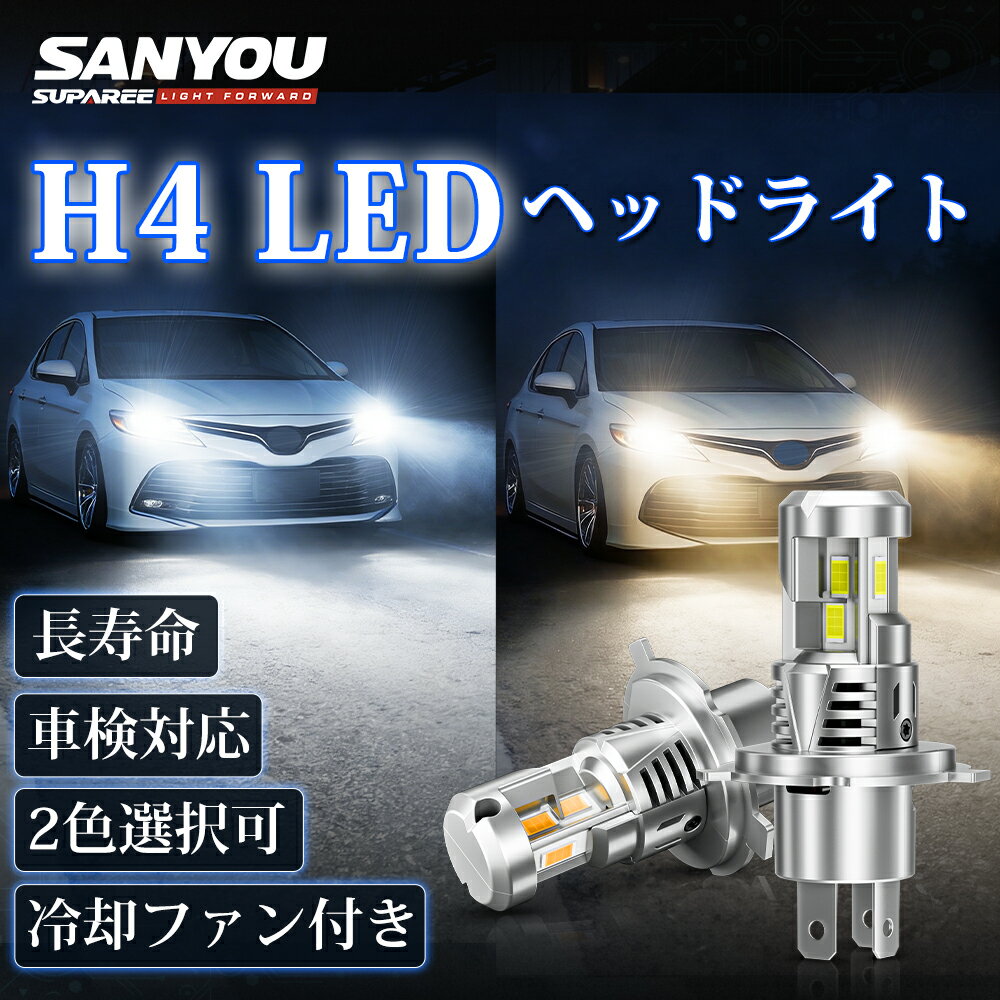 \72時間限定★15%クーポン有!/SUPAREE H4 LED ヘッドライト H4 車検対応 爆光 hi/lo ハロゲンサイズ 9倍明るさアップ 12V 車/バイク用 ホワイト 6500K 電球色 4200K 三重放熱 静音ファン 長寿命 高光効LEDチップ ノイズ抵抗 H4 ledバルブ バイク H4 led 電球色 3年保証