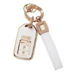 CACARLIKE ホンダキーフォブカバー レザーストラップ付き 車のキーフォブケース ホンダ アコード シビック CRV オデッセイ パイロット スマートキー 輸入品