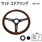 ウッド ステアリング 38Φ 15インチ ハンドル レトロ調 クラシック マットブラック 木目 ブラウン 汎用 ホーン 375mm 送料無料