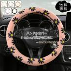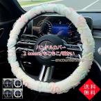 ハンドルカバー もこもこ 花柄 可愛い ステアリングカバー ふわふわ 軽自動車 普通車 パイル ファー 防寒 暖かい 寒くない 冬用 秋用 きれいめ