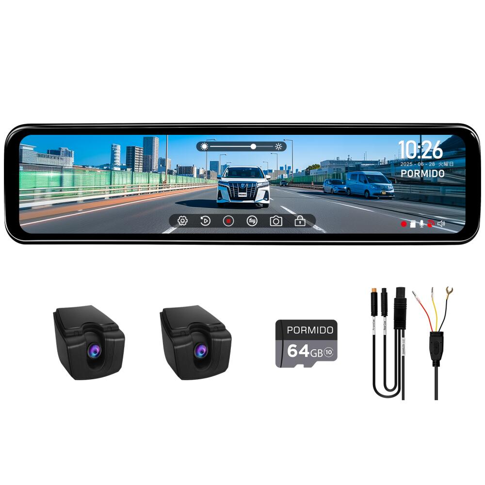 【20%OFFクーポンで50,304円 11/30 0:00~12/1 23:59】 ドライブレコーダー 前後 ミラー型 純正ミラー交換 爆光液晶 55FPS+60FPS デジタルインナーミラー 2カメラ STARVIS HDR FHD 1080P 分離型 デジタルズーム ミラー型ドライブレコーダー 11インチ 1年保証 PORMIDO PRD8XC