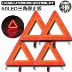 三角停止板 4台セット 三角表示板 三角反射板 60LED 停止板 警告板 反射板 車 バイク led 折りたたみ コンパクト 送料無料