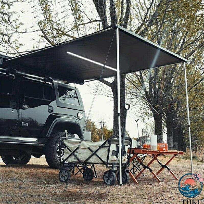【全品2点で5%OFF】車 サイドオーニング カーサイドタープ カーオーニング LEDライトバー付き アルミ合金ハウジング リップストップ200Dオックスフォード生地 UPF50+防水PU 5000mm 車/SUV/トラック/バン用
