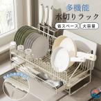 水切り 水切りラック シンク 水切りかご スリム 大容量 包丁立て 箸置き まな板立て 水を自動で流すトレー付き 省スペース 食器 乾燥 組