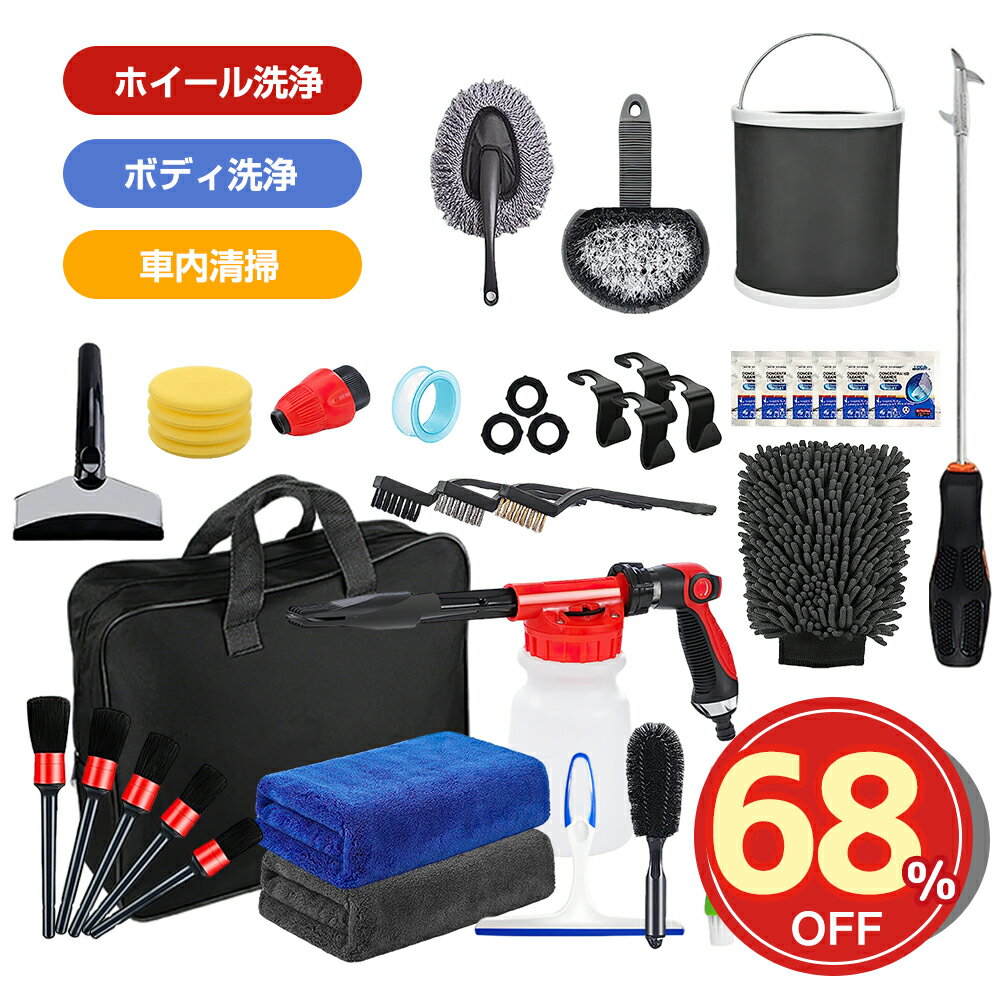 ★SS限定68%OFF→4250★洗車セット 35点 洗車 ホイールブラシ 洗車用ブラシ ボディ 洗車用品 道具 マイクロファイバータオル 乾拭き 水拭き バケツ ホイール洗車 吸水タオル 車内 隙間 エアコン掃除 洗車グッズ 工具一式 収納バッグ付き