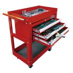 三段引出し付ワゴン T28-3X 工具箱 ワゴン キャスター ストッパー 盗難防止 ロック機能 収納 点検 整備 作業 レッド 赤