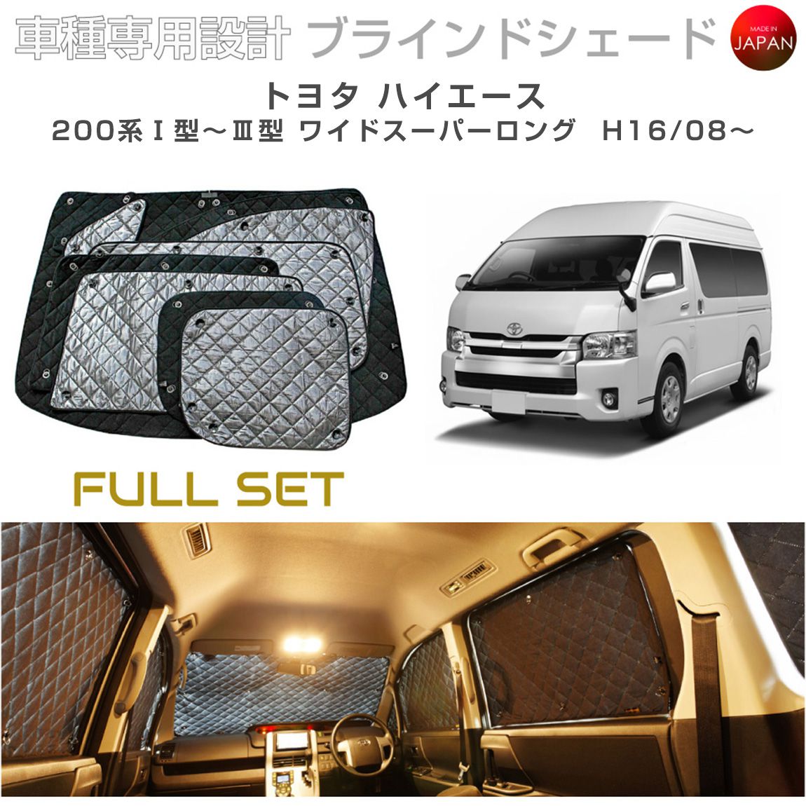 トヨタ ハイエース アクセサリー ブラインドシェード フルセット 車 日よけ サンシェード 車種別専用設計 BRAHMS 断熱 保温 断冷 目隠し 防犯対策 車中泊 車中テレワーク 着替え 日本製 UVカット フルセット B1-009-C-R7 送料無料