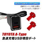 USBポート 増設 車 トヨタ Aタイプ QC3.0 PD 急速充電 USB電源 2ポート スイッチホール 埋め込み タイプC タイプA LED ケーブル 配線 エレクトロタップ セット