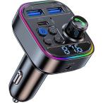 FMトランスミッター 車音楽 Bluetooth5.3 最大45W 3台同時充電 急速充電 iPhone Android カーチャージャーusb メモリ スマホ 車で USB C ポート 高出力 QC3.0 LED 光 シガーソケット 12〜24V車対応 携帯 無線